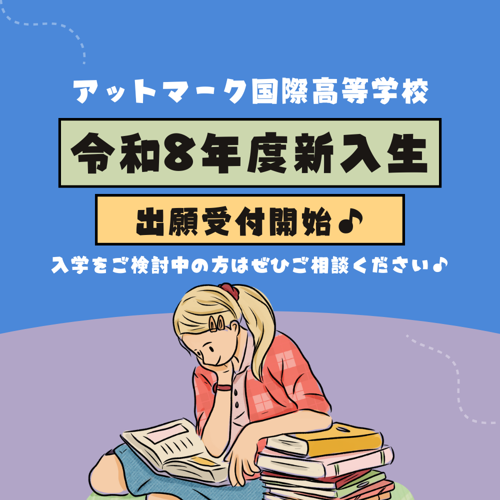 アットマーク国際高等学校では、令和8年度入学に向けた一般入試の出願受付を開始いたしました。