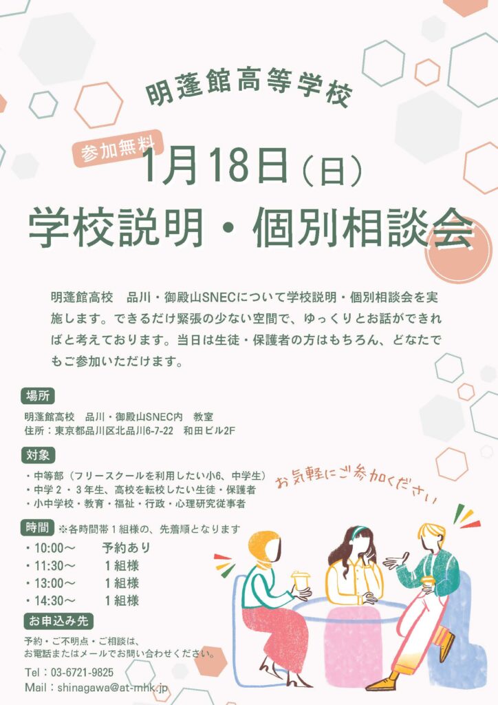 【学校説明】【個別相談】1月18日(日)開催決定!