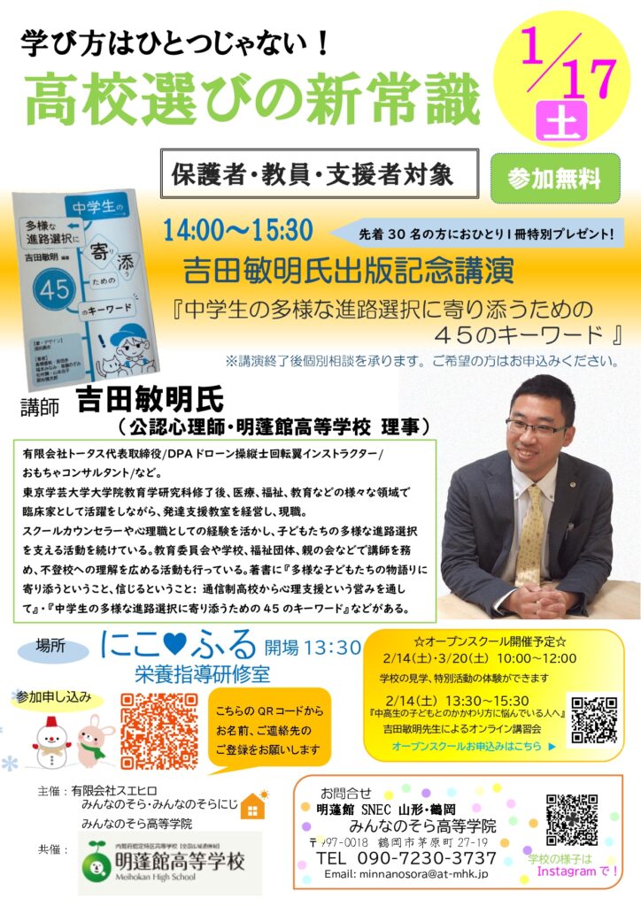 ■お問合せ明蓬館SNEC山形・鶴岡/みんなのそら高等学院TEL. 090-7230-3737 Email. minnanosora@at-mhk.jp
