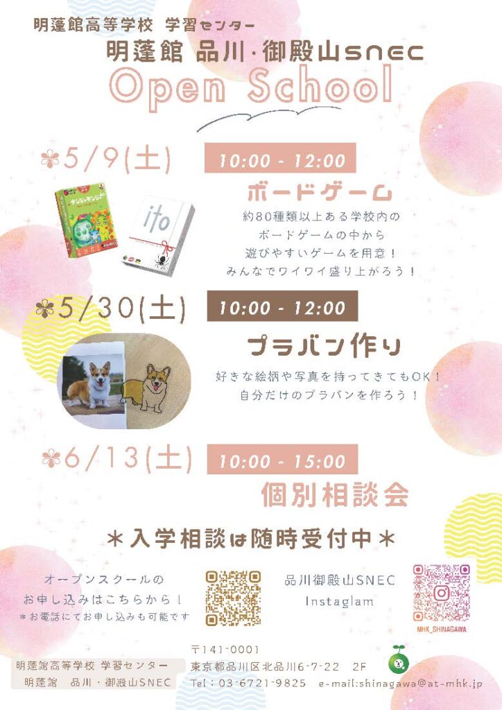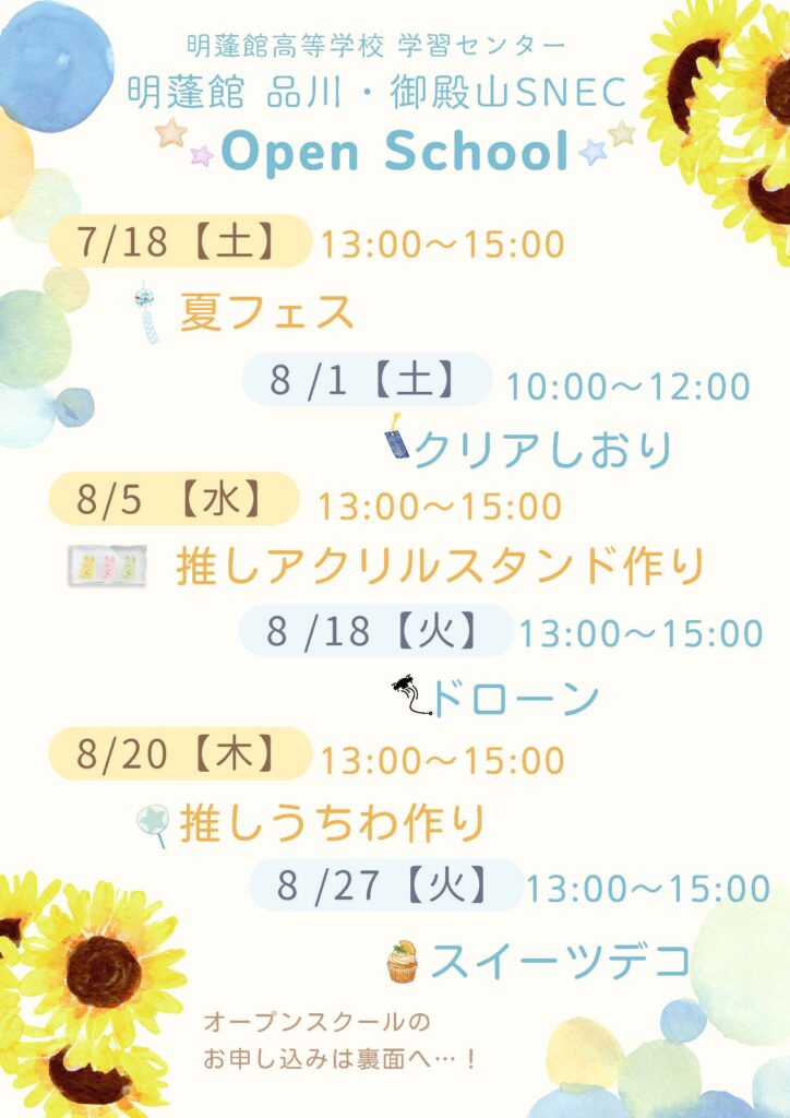 【5~8月】品川御殿山オープンスクールのお知らせ