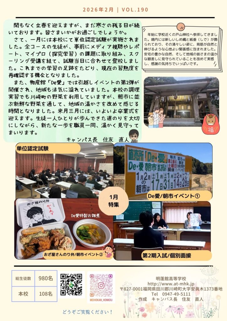 明蓬館高等学校安宅本校の1月の様子です。