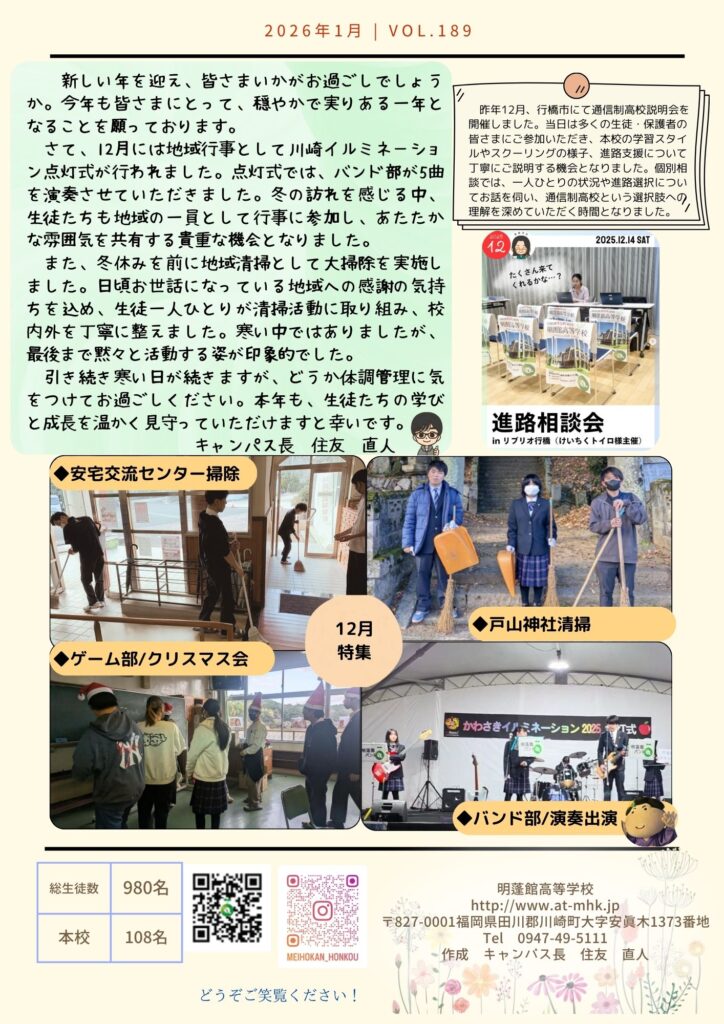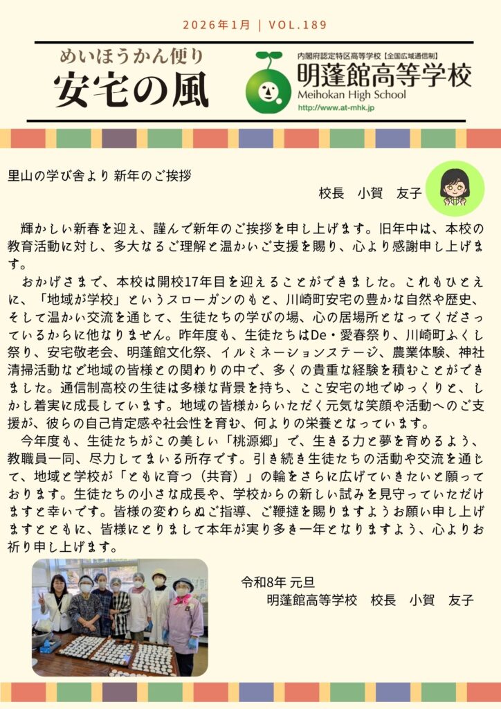 明蓬館高等学校安宅本校の12月の様子です。