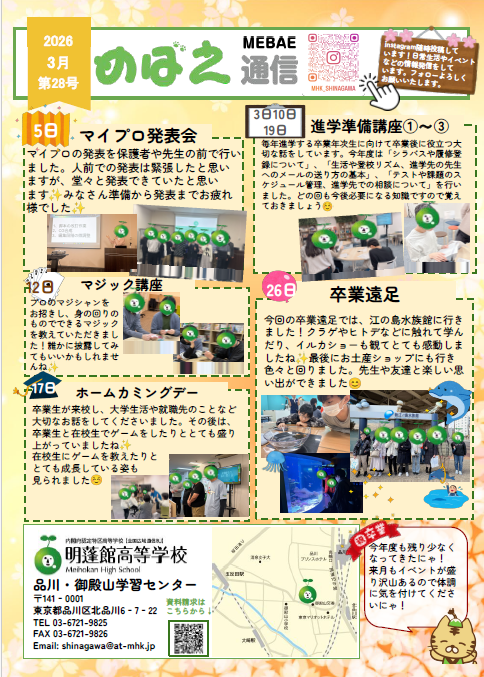 【公式】通信制高校 明蓬館高等学校各校からのお知らせお知らせ🌼品川SNECのおたより【3月号】🌼