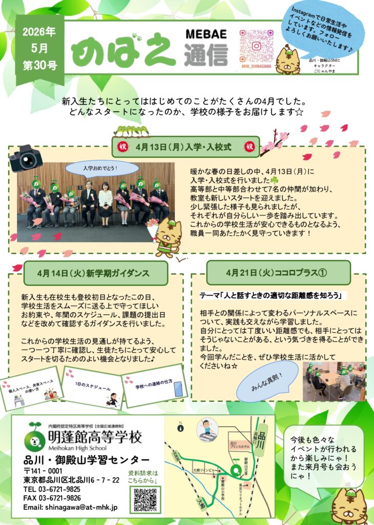 【公式】通信制高校 明蓬館高等学校各校からのお知らせお知らせ🍃品川SNECのおたより【5月号】🍃