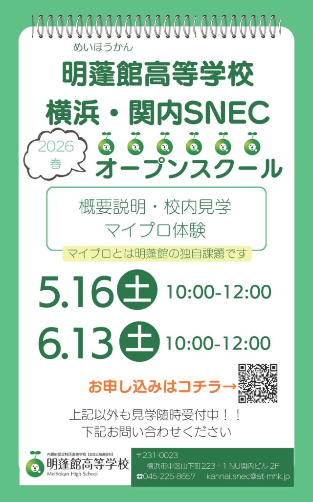 【公式】通信制高校 明蓬館高等学校各校からのお知らせお知らせ横浜・関内SNEC 2026年度オープンスクールスタート!!